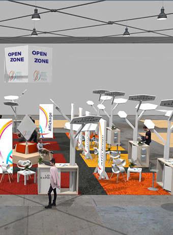 Nouvelle formule d’exposition, l’open zone est un espace partagé d’environ 150 m² offrant un équilibre entre visibilité optimale et identification immédiate au cœur du parcours des congressistes.
